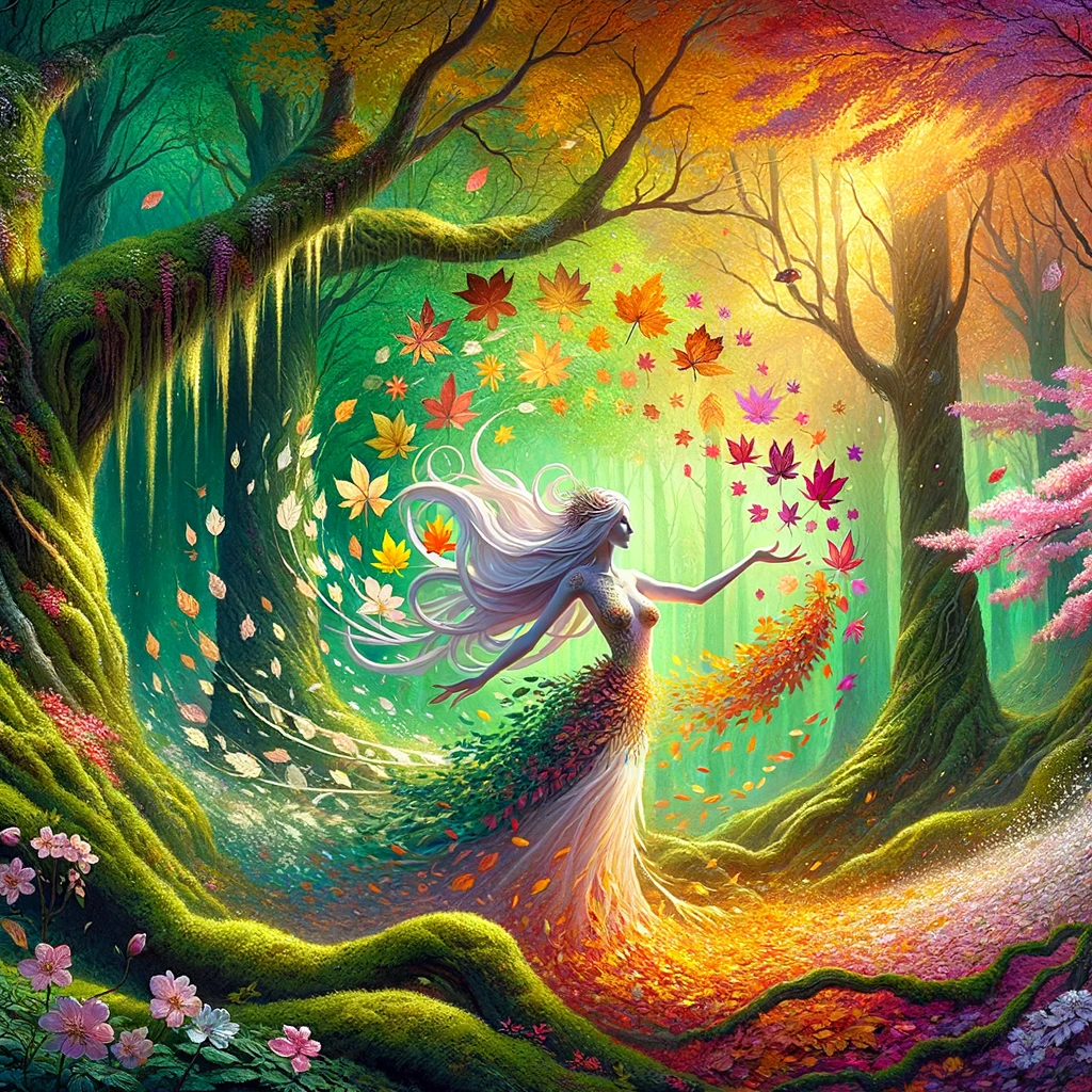 Beyond the borders of an ordinary town, where houses are neatly aligned beside a cobblestone path, lies a flourishing forest. This ethereal landscape serves as the abode for enchanting creatures, flowers of ethereal hues, towering trees, and marvelous contrasts of day and night, seasonal changes that amaze the dwellers year-round. The realm has a guardian. A timeless entity that ensures the cyclic dance of nature never misses a beat. Seraphina, the Guardian of the Seasons.